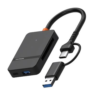 A multifunction 8-in-1 card reader with Type-C and Lightning interfaces, supporting SD, TF, CF, and MS cards with high-speed data transfer and wide compatibility for smartphones, laptops, and tablets.