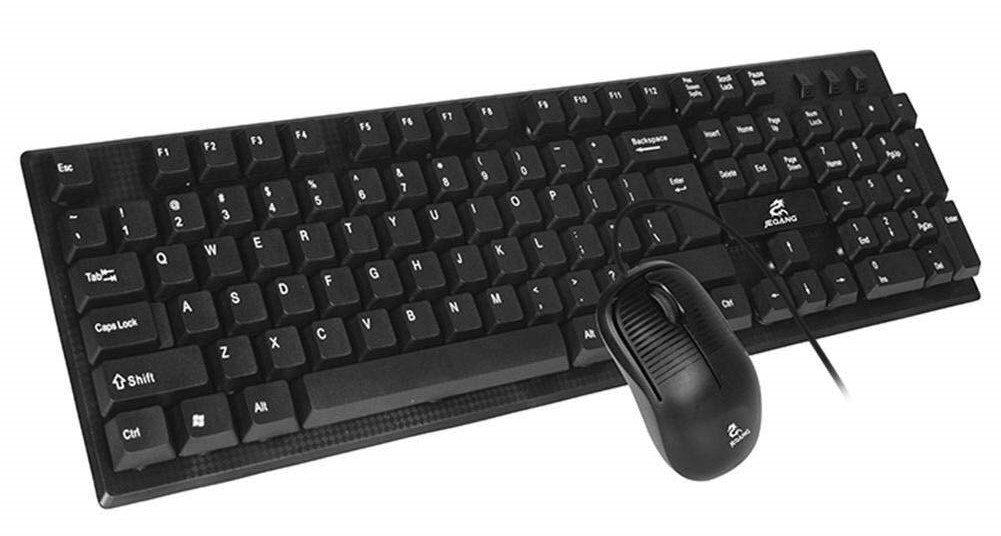 A reliable wired keyboard and mouse combo with USB connectivity, featuring a full-size keyboard and high-precision optical mouse, designed for smooth typing and everyday office or home use with plug-and-play support.