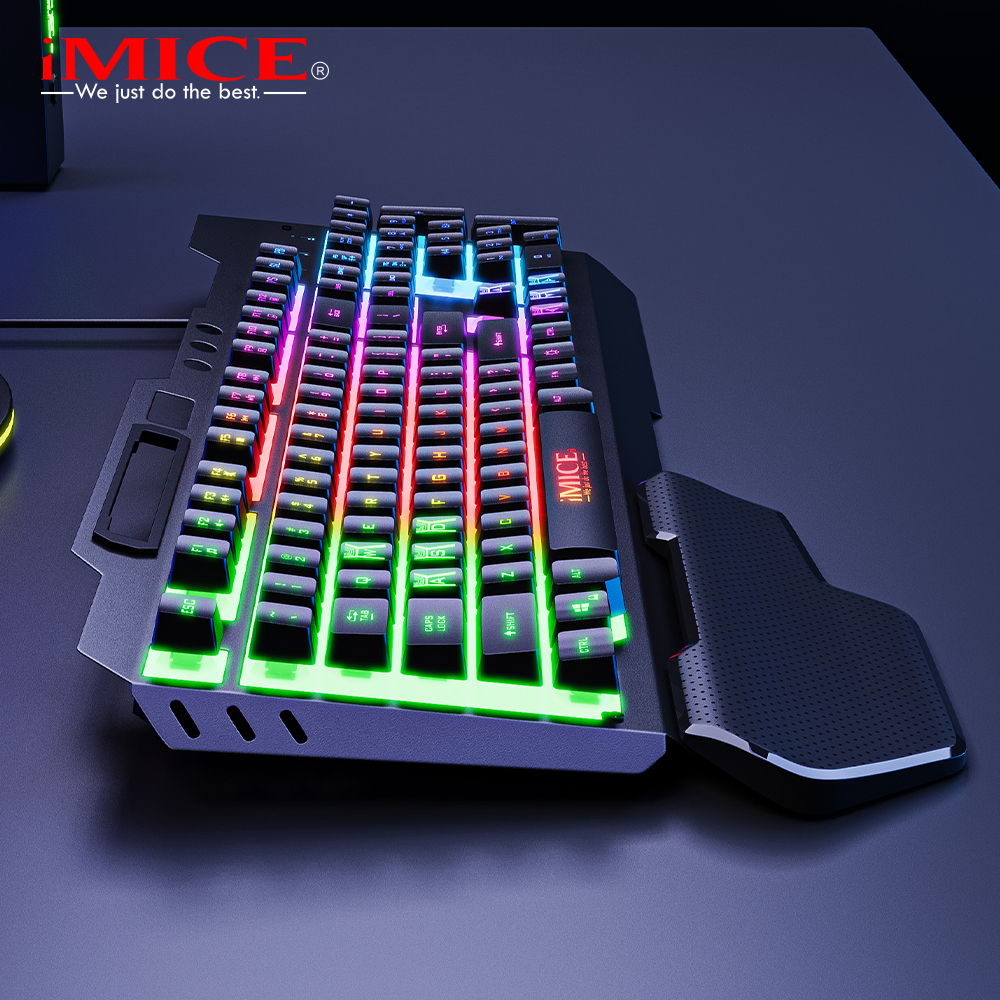A stylish gaming keyboard with RGB lighting, responsive keys, and durable build, designed for smooth typing and an enhanced gaming experience with plug-and-play USB connectivity.