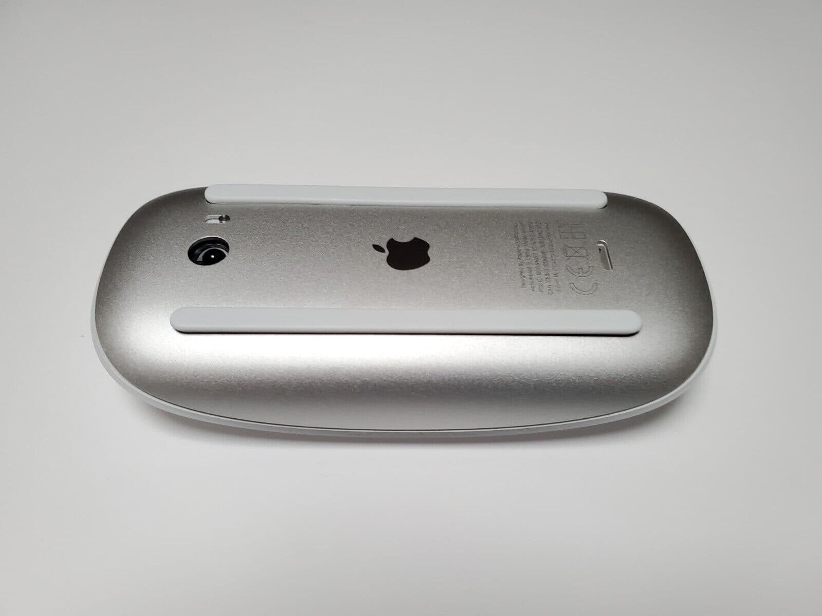 A sleek white wireless mouse with a multi-touch surface, offering smooth navigation, gesture control, and seamless Bluetooth connectivity for Mac devices.